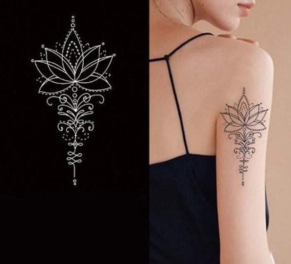 Lotus Tattoo Temporary Stickers Women Flower Henna Tattoo Sk Etsy